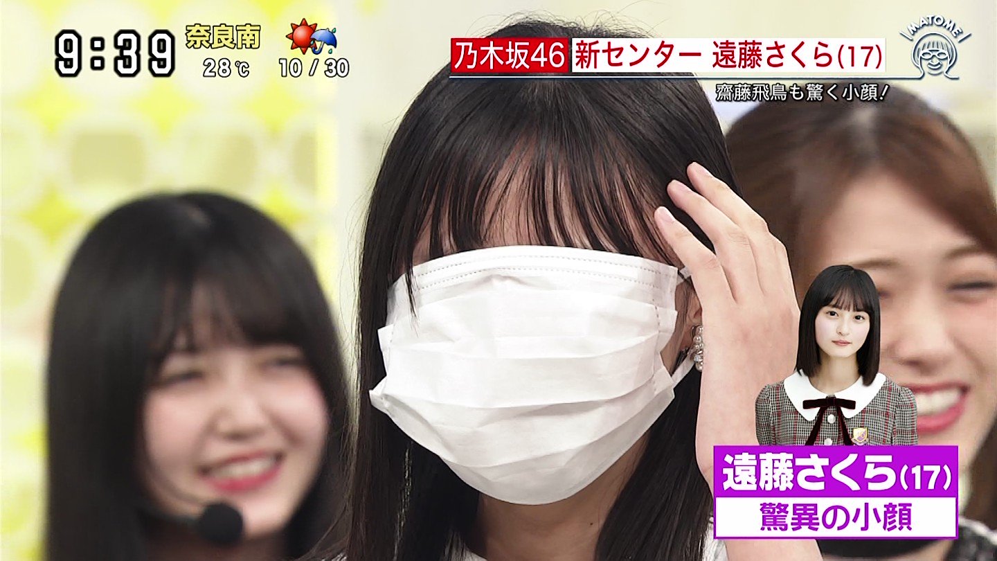 遠藤さくらさんの顔の小ささはテレビ番組の中で話題となり、おとな用のマスクを着けたところ顔がすっぽりと隠れてしまいました。